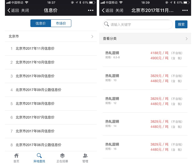 集团可以在平台查询广材网提供的全国建筑材料的最新市场价,同时在平台发布工程招募信息,为采购招标进行前置供应商筛选。
